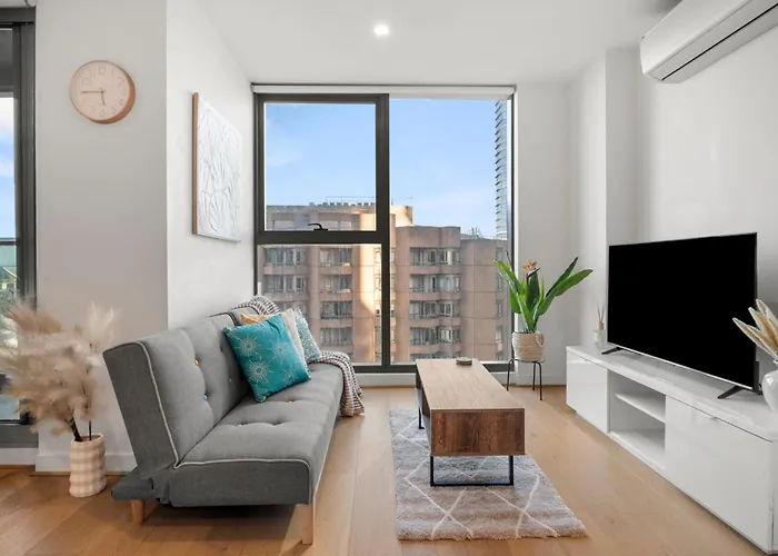 2Br Boho Oasis Central City Living Melbourne apartment lies in the Melbourne CBD district and offers swift access to the bluestone prison "Old Melbourne Gaol", which is nearly 5 minutes' walk away. Featuring a terrace, this apartment is located in the centre of the city.